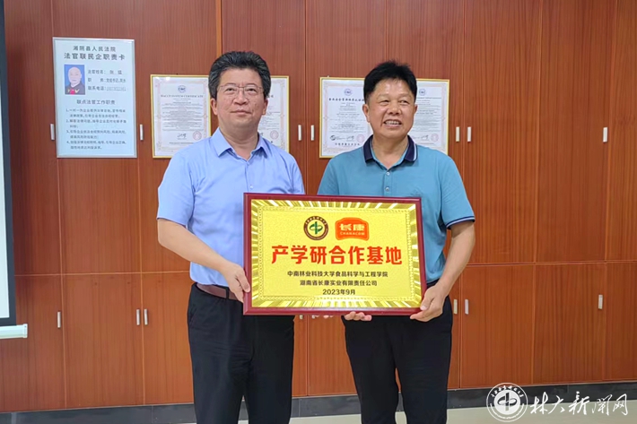 长康实业执行总经理谭迪武对尹双凤一行的到来表示诚挚欢迎,并详细介绍了企业的发展历程。他指出,中南林业科技大学多年来一直为长康输送优秀专业技术人才,希望借“产学研合作基地”及“就业实习基地”的签约契机,进一步加强与学校在科研与人才培养方面的交流与合作。
