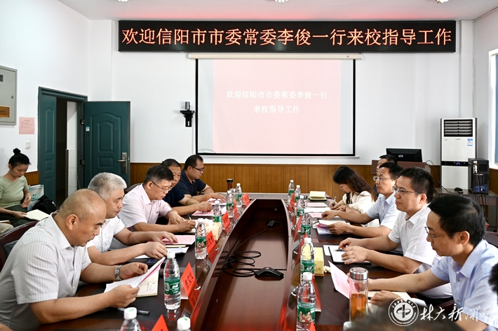 闫文德对李俊一行的到访表示热烈欢迎,对信阳市给予我校建设发展的大力支持表示衷心感谢。他简要介绍了学校的历史沿革、基本情况和办学特色,重点介绍了学校近年来在学科建设、重点实验室建设、科学研究与社会服务等方面取得的标志性成果。他希望信阳市进一步加强和学校的交流合作,在优势互补、资源共享的基础上,探索更具广度和深度的校市合作模式,让双方的人才、科技和资源优势充分结合并发挥积极作用。