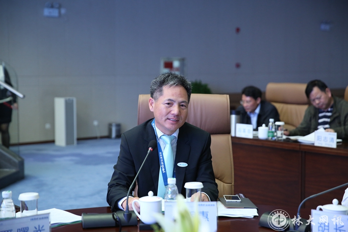 赵运林作了题为“以生态文明建设为统揽,以双一流建设为目标,努力彰显绿色发展的行业特色和办学理念”的中心发言。他阐述了习近平同志关于生态文明建设的重要思想;我校“十二五”期间在生态文明建设中取得的人才培养、科学研究、社会服务等方面的主要成绩;以及学校今后在凝聚全校共识、彰显办学特色,促进成果转化、打造高端品牌,出台相关政策、完善激励机制,坚持久久为功、确保取得实效方面应该努力的方向。